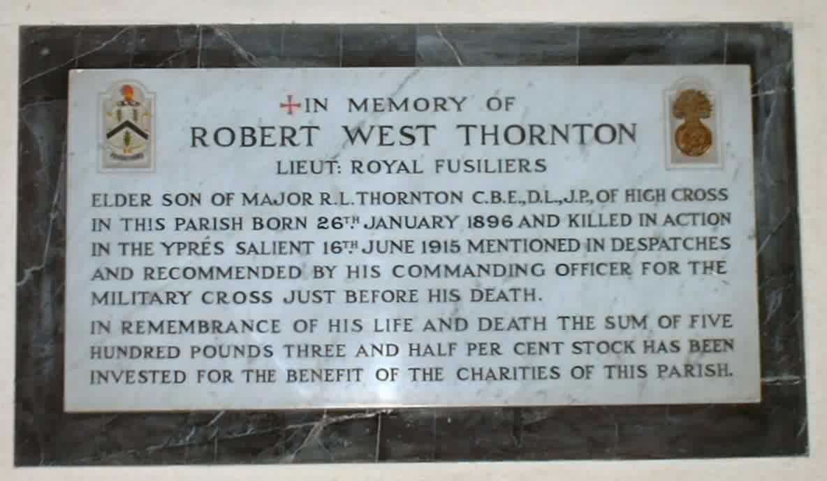 In memory of Robert West Thornton lieut: Royal Fusiliers